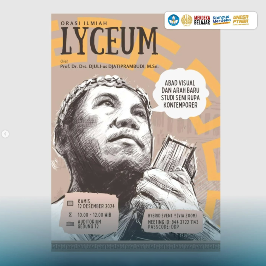 Surabaya, 12 Desember 2024 — Program Studi Seni Rupa Universitas Negeri Surabaya menghadirkan orasi ilmiah dalam rangkaian acara LYCEUM dengan narasumber Prof. Dr. Drs. Djuli Djatiprambudi, M.Sn. Pada kesempatan t
